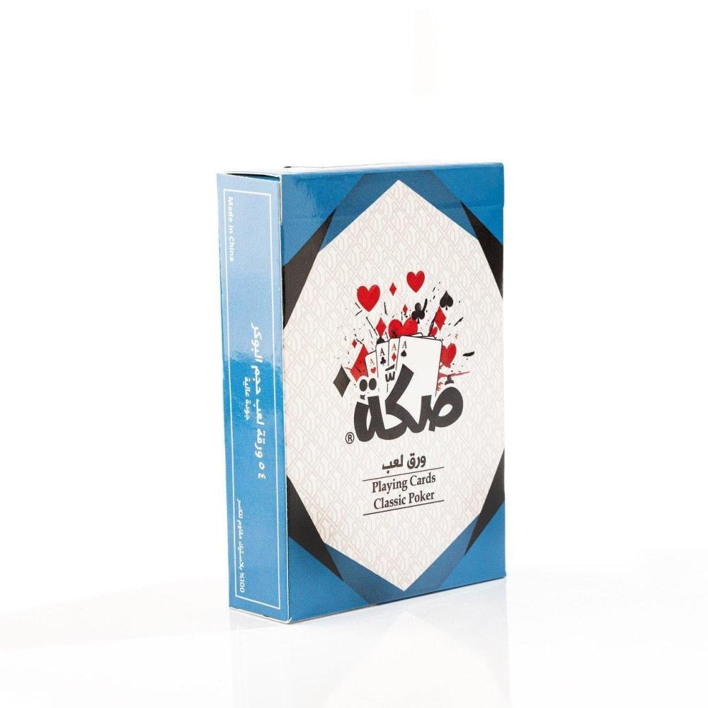 6 حبات من ورق صكة الأزرق (البوكر) المكونه من 54 بطاقة ويتميز هذا الورق بقوته كما أنه مصنوع من البلاستيك ذو الجودة العالية كل التفاصيل المميزه اجتمعت في منتج واحد فريد من نوعه
